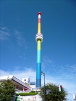 上から下まで同じ断面積のニョロッとした塔は、虹色の装飾が施されています。