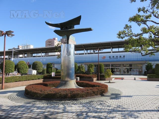 JR新幹線は岐阜羽島駅、同じホームが並ぶ名鉄は新羽島駅です。