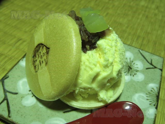 出てきたにはもなかの皮にアイスを盛ったものです。