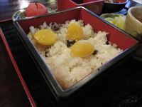 5分ほどで香ばしい栗が乗ったおこわが、目の前に運ばれてきます。