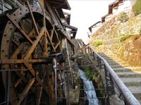 写真でよく見る水車とその後ろに続く坂は、この辺りにあるはずです。