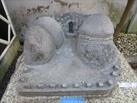 その脇には子宝祈願を祀った「夫婦岩」が飾られており、お参りに来た人が置いたと思われる賽銭があります。