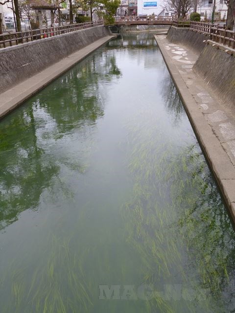 ここまでの牛屋川が、ここからは大垣城の堀となった水門川が城の周りをぐるりと取り囲むように走ります。