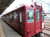 大垣駅から乗込んだ電車は、昔の近鉄電車のエンジ色の車体です。