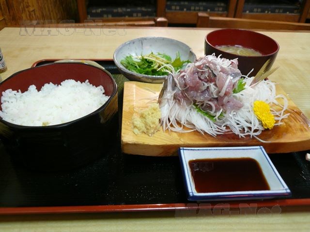 ただ温泉町であるが故どの店も値段が高く、その結果選んだのがアジの造り定食でした。