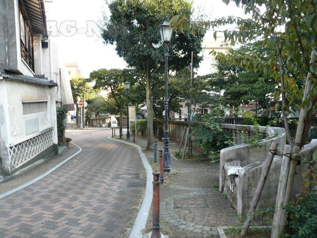 河辺の道は、表通りの賑やかさはなく川の両側の石畳の道は、静かさを保っています。