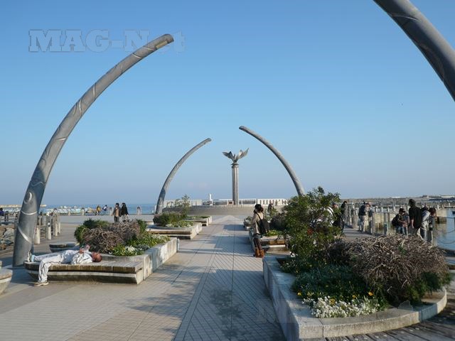 海岸沿いは、防波堤の上が整備された遊歩道になっている「なぎさ海浜公園」です。