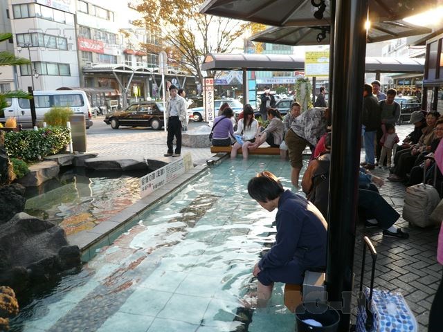 駅前のロータリーの一角にある「家康の湯」では、無料で足湯が楽しめます。