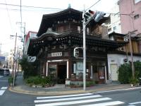 坂を下りきった所の交差点には、古いたたずまいを残した店が信号の両脇に建っています。