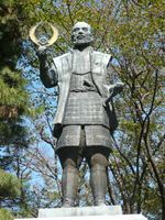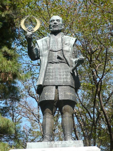 坂を登っていく途中に、徳川家康の像があります。
