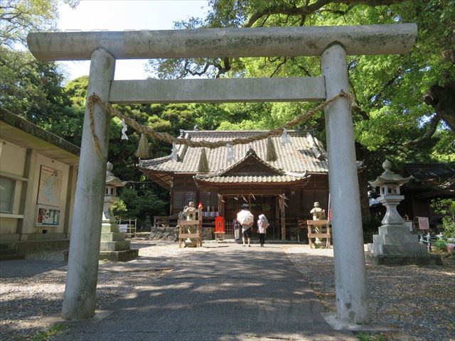 「吉野家旅館」の道向かいには、「藺草神社」と「細江神社」が同じ敷地内に仲良く並んで建っています。
