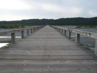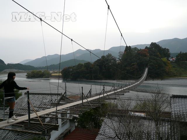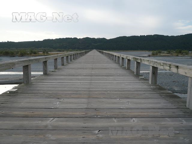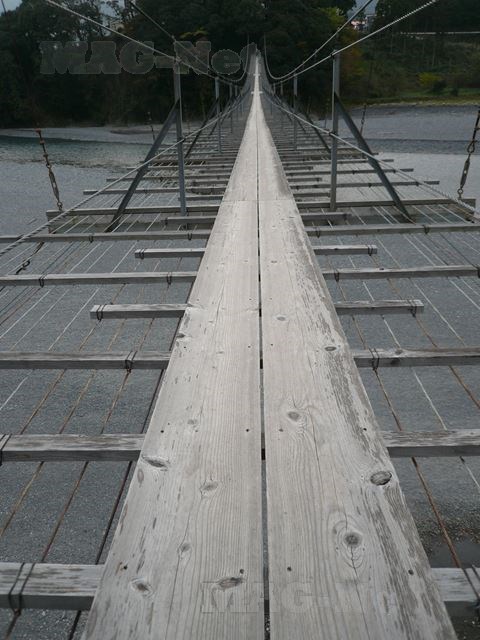 橋を歩けば、木の棒を叩いたような軽い音がし、また所々でお寺の縁側を歩く時のような心地よい木のきしむ音がします。