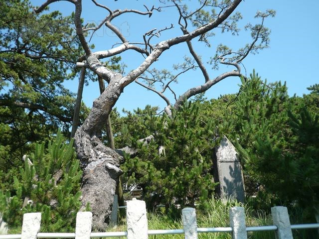 枝だけが残り痛々しい姿ですが、二代目から少し海側に、ちゃんと「初代羽衣の松」はありました。