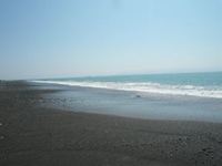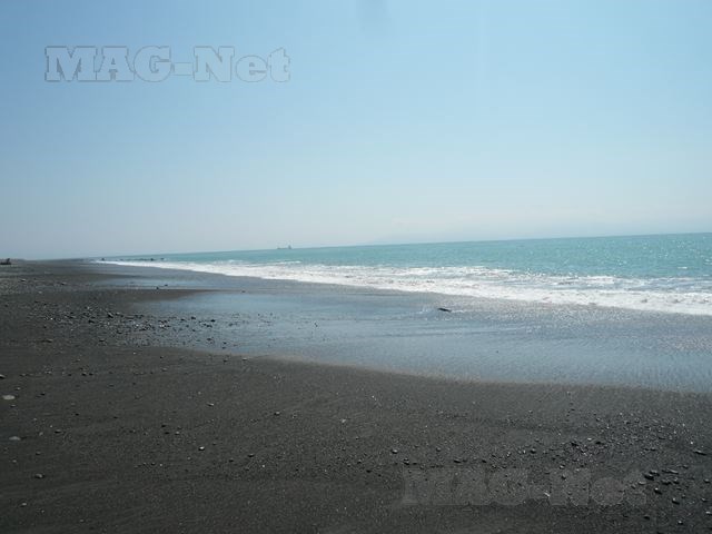 駿河湾に面する海岸には、多数の松の木が広がっています。