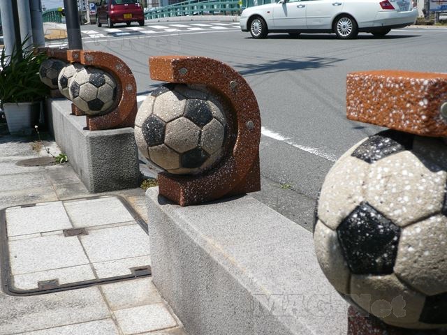 途中の「エスパルス通り」には、この地の清水エスパルスを称えて、歩道の柵がサッカーボールの形をしています。