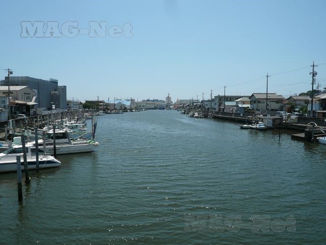 駿河湾に注ぐ巴川には、今も多くの小型漁船が岸の両端にびっしりと停泊しています。