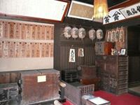 扉をくぐり中に入ると提灯、そして名前の入った木札が壁に懸っています。